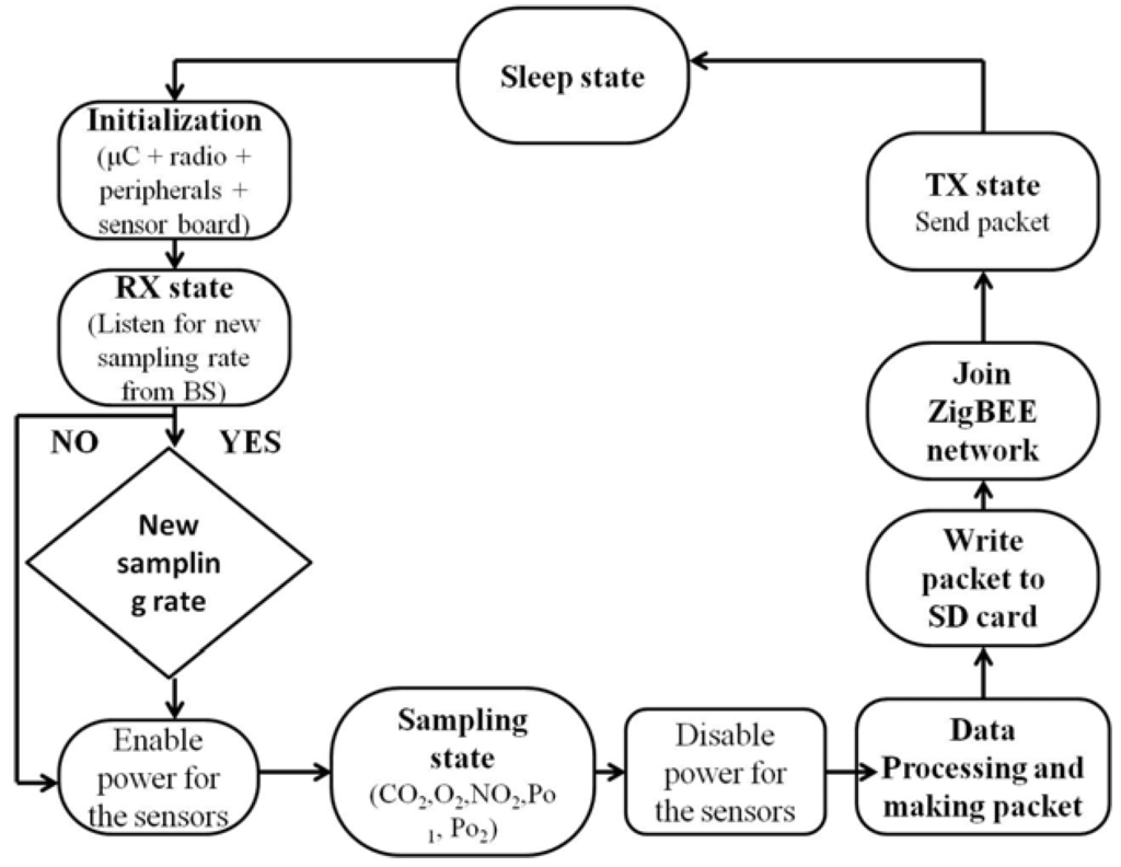 where is the sum of the sampling times for all of the sensors, tSD is the time to write the message to a SD card and tZB is the time to join the ZigBEE network.