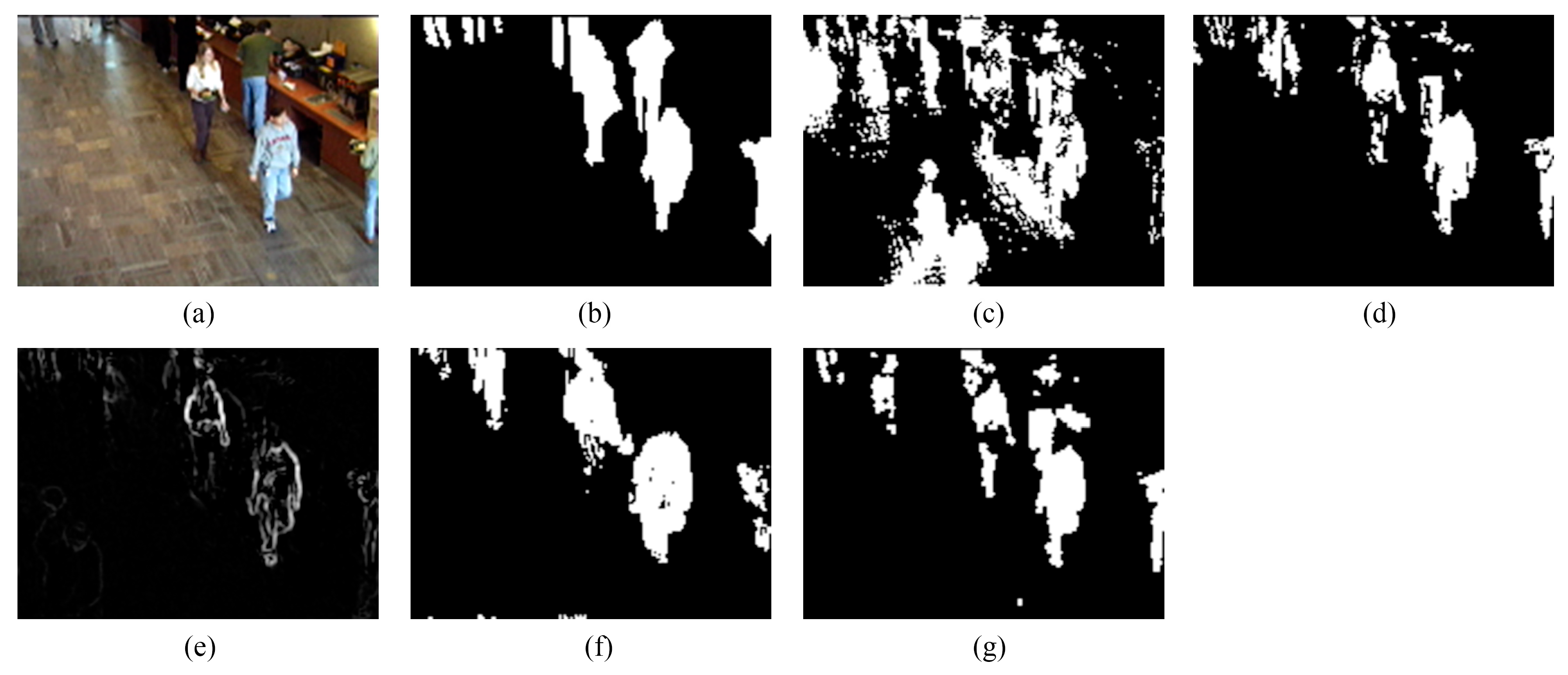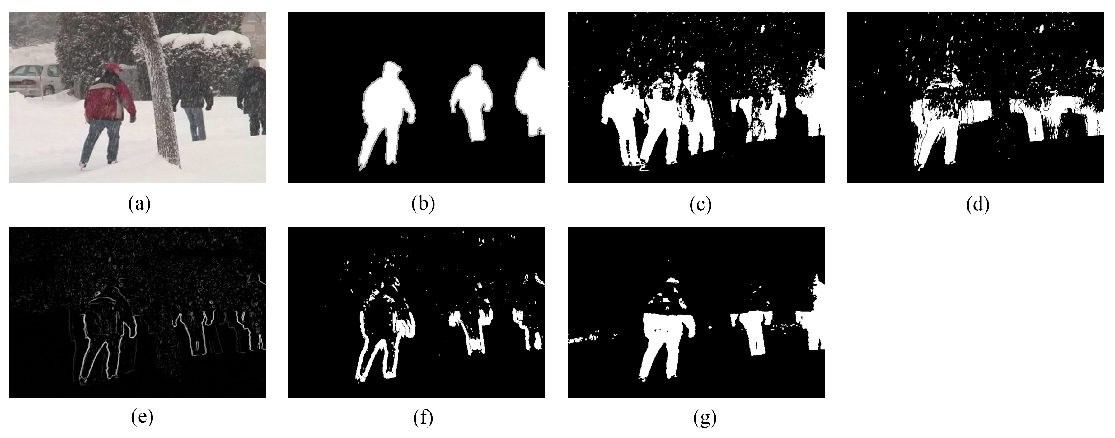 - Hofmann, M.; Tiefenbacher, P.; Rigoll, G. Background segmentation with feedback: The pixel-based adaptive segmenter. In Proceedings of the 2012 IEEE Computer Society Conference on Computer Vision and Pattern Recognition Workshops (CVPRW 2012), Providence, RI, USA, 16–21 June 2012; pp. 38–43.