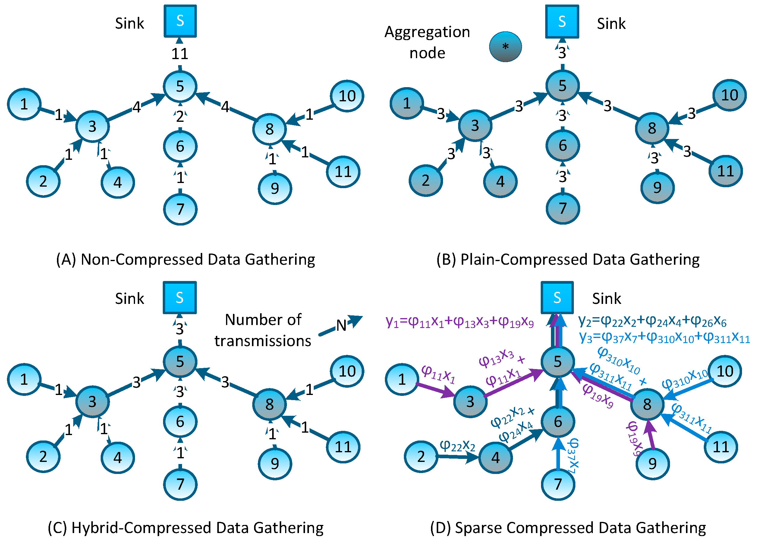 12. Quer, G.; Masiero, R.; Munaretto, D.; Rossi, M.; Widmer, J.; Zorzi, M. On the interplay between routing and signal representation for compressive sensing in wireless sensor networks. In Proceedings of the IEEE Information Theory and Applications Workshop, San Diego, CA, USA, 8 February 2009; pp. 206–215.