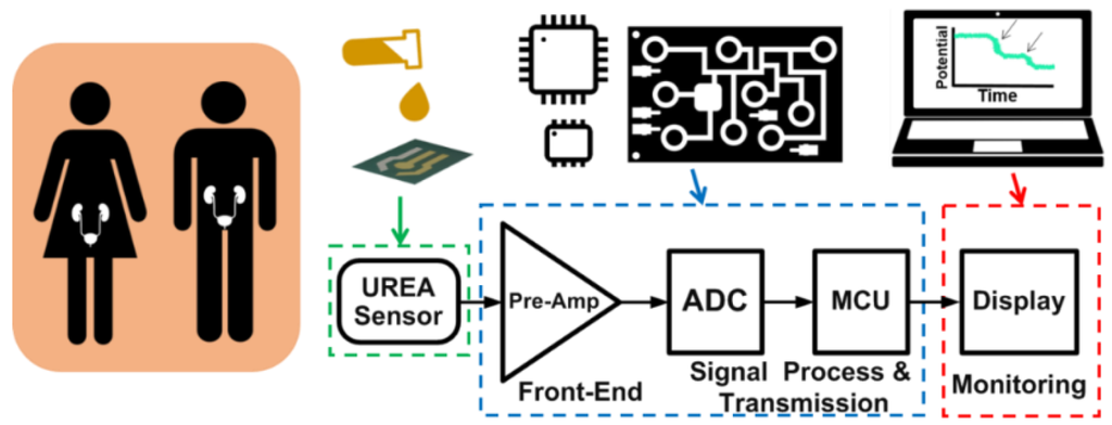 W.J. Ma carried out the fabrication of the circuit device and participation of the cross-field experiment. S.H. Kuo carried out the fabrication of MEMS material experiments. J.L. Lin carried out the fabrication of sensing material experiments and SEM images. S.H. Chou carried out extra experiments to verify and provided to the reviewer. P.H. Chen carried out the urea concentration calibration experiments. M.J. Syu designed and assigned the experiments, discussed the data. S.C. Lai assigned the digital part of the system experiment. C.H. Luo assigned the system and discuss MEMS material experiment. W.J. Ma collected the experiment data and wrote the paper. S.C. Lai, M.J. Syu and C.H. Luo supervised the research, critically reviewed and revised the paper.