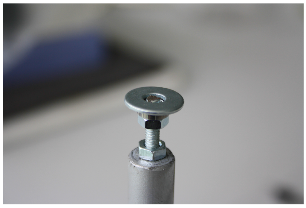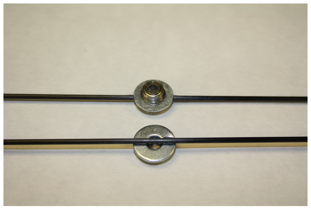 Detail of the union of the fibre carbon rod, washer, and ball bearing.