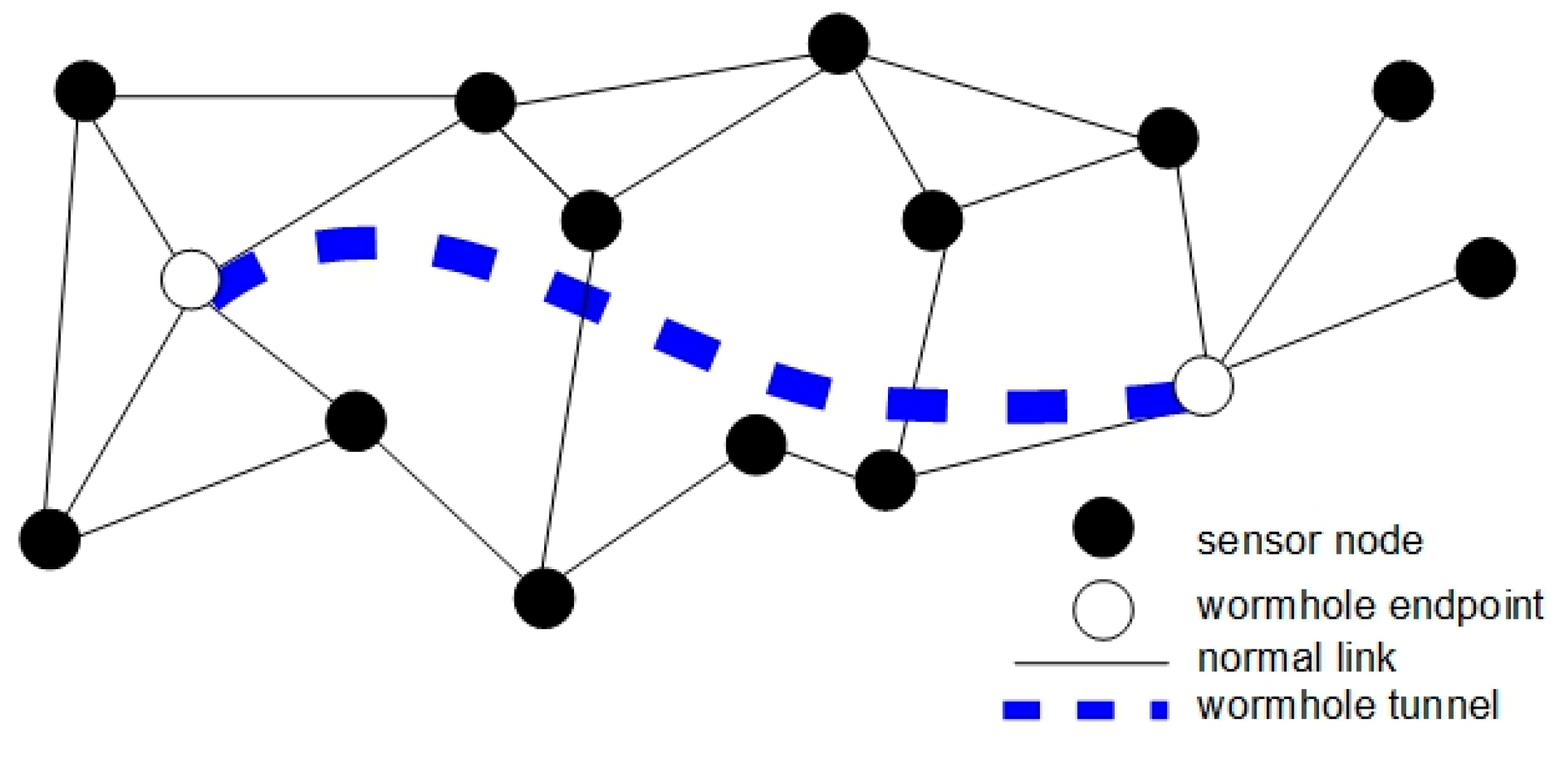 - Hu, Y.C.; Perrig, A.; Johnson, D.B. Wormhole Attacks in Wireless Networks. IEEE J. Sel. Areas Commun. 2006, 24, 370–380. [Google Scholar]