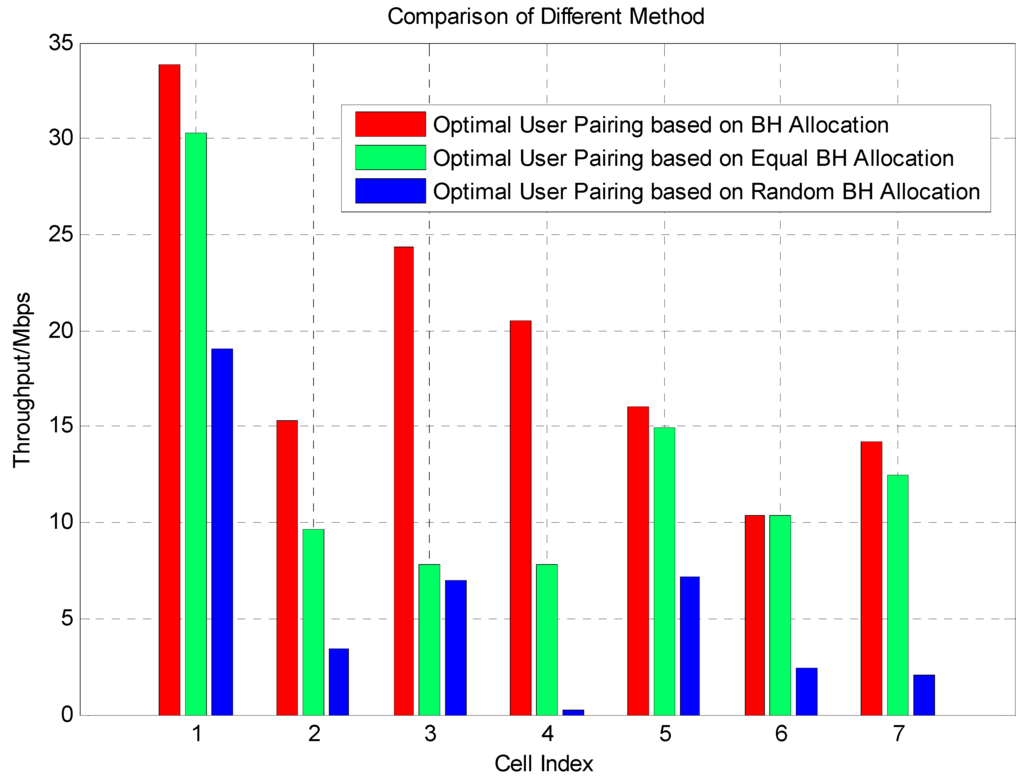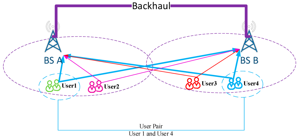 Then we pair users in base station A with users in base station B by using the function , which is a perfect matching problem [15]. By relaxing the binary variables to continuous variables in [01] and solving this linear programming problem, we get the exactly optimal binary solution.