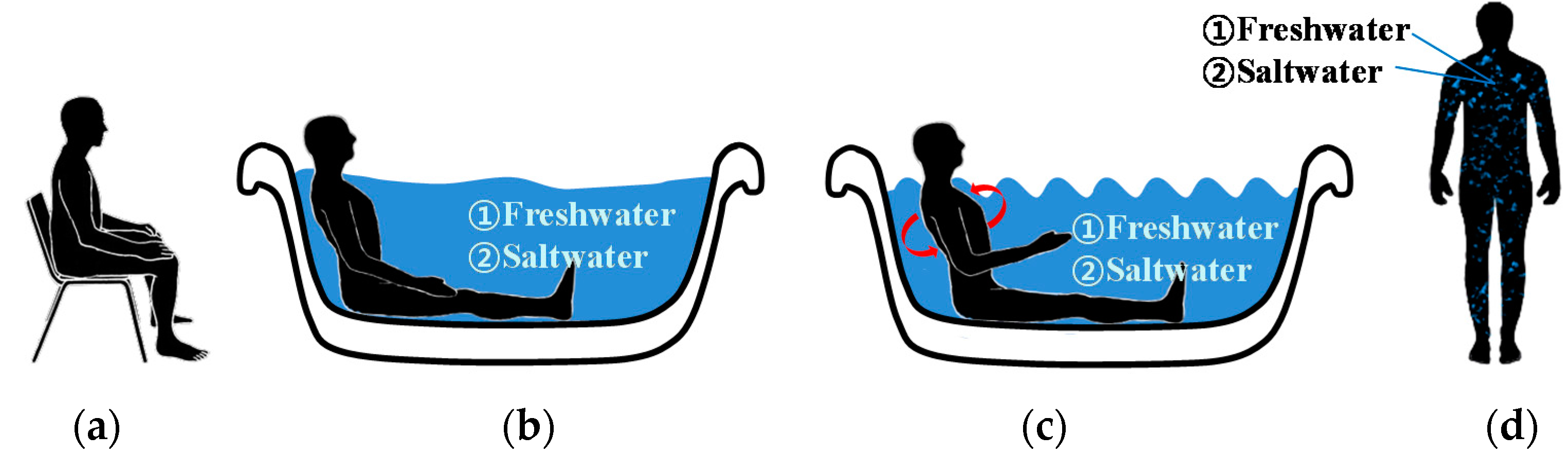 - Five-minute relaxation (lying position) inside the water pool (the immersion condition without movement).