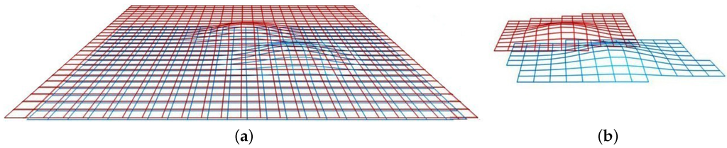 A 3D visual concept of the idea behind octree use: two surfaces to be matched (a); the same surfaces resampled (b).