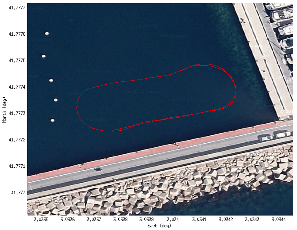 Trajectory of the experiment over the Google Maps image of the St. Feliu de Guíxols harbor.