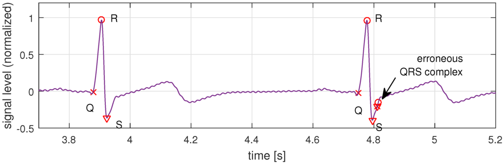 - a comparison step to identify the largest peaks in a window to locate Q, R, and S.