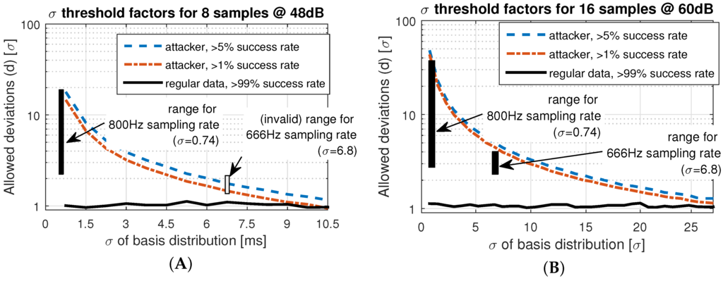 - With a deviation of and more, and a dynamic range of dB (8-bit) and more, we practically cannot identify any false negatives anymore, i.e., authentication attempts are assessed correctly.
