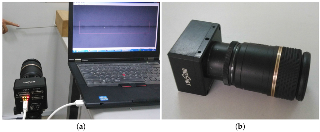 Engineering structures including bridges and buildings are inevitably exposed to various external loads, such as traffic, earthquakes and gusts during their lifetime. These external loads may induce structure damage and lead to life-threatening materials’ failure. Conventional sensors like accelerometers [] are widely employed in monitoring system to obtain valuable vibration information for mechanical analysis or structure safety evaluation. However, conventional sensors can only obtain vibration acceleration signal, which does not provide an intuitionistic exhibition of the actual vibration. Besides that, the installation of contact sensors is sometimes difficult and the additional mass of sensors may change the behavior of structures in some precise measurements. Non-contact measurement techniques, such as speckle photography [], hologram interferometry [] and laser Doppler vibrometer [], have been developed for years as effective alternatives to traditional measurement devices. However, most of the non-contact equipment require high costs and are composed of complex structures; thus, these systems can hardly be used widely in practical applications.