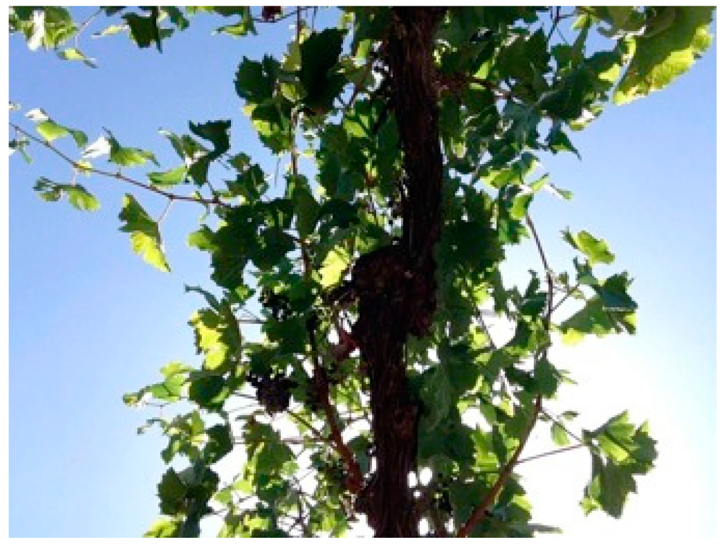- Fuentes, S.; Poblete-Echeverría, C.; Ortega-Farias, S.; Tyerman, S.; De Bei, R. Automated estimation of leaf area index from grapevine canopies using cover photography, video and computational analysis methods. Aust. J. Grape Wine Res. 2014, 20, 465–473. [Google Scholar] [CrossRef]