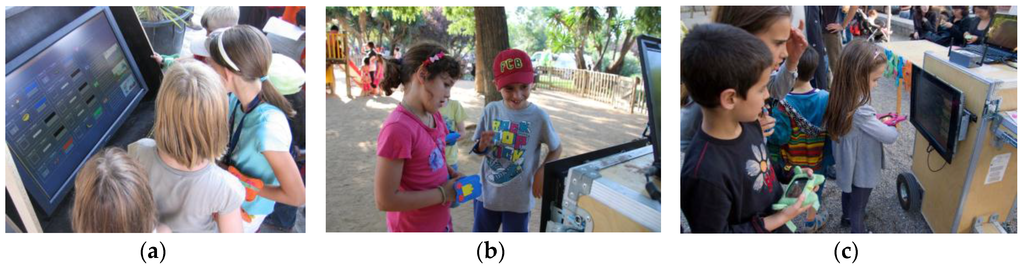 Different researchers and developers have dealt with one or some of these problems from different perspectives, e.g., by contributing to promote a healthier lifestyle with the development of technologies and media games that foster physical activity through the game, or by reducing the social break with the development of multiuser and collaborative games. In this sense, we can mention some game platforms such as Nintendo Wii and the games Wii Sport or Wii Balance Board, that revolutionized the gaming world by requiring users to physically exercise while playing or by converting them into personal trainers. Also, the Wii remote controller has been used by the research community to develop other applications and to investigate novel human-computer interactions [8,9,10,11]. A more recent example is Kinect, a range-based sensor from which many applications in the areas of entertainment and edutainment have been developed [12,13,14,15]. These platforms promote both physical activity and collaborative gaming, thus contributing positively to address the aforementioned problems. However, these platforms are still intended to be played indoors and require the use of other equipment such as a TV screen, and thus are not able to comprise the whole problem, as these facts restrict children’s playing freedom.