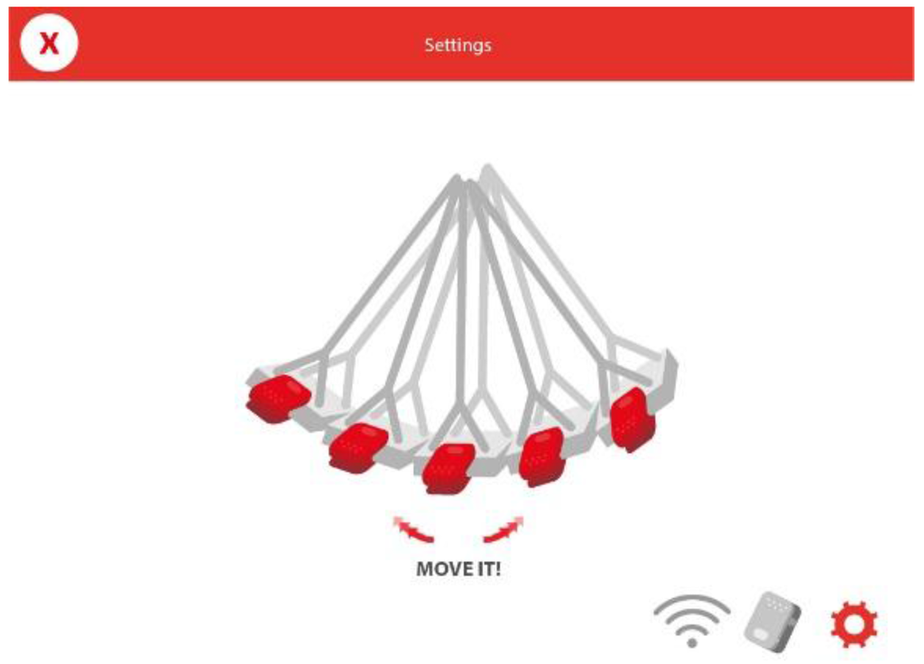 Once this configuration is finished, when starting the game, the system automatically calibrates the sensor with respect to the inclination it has. For a proper calibration, it is necessary that the element of the park is as still as possible.
