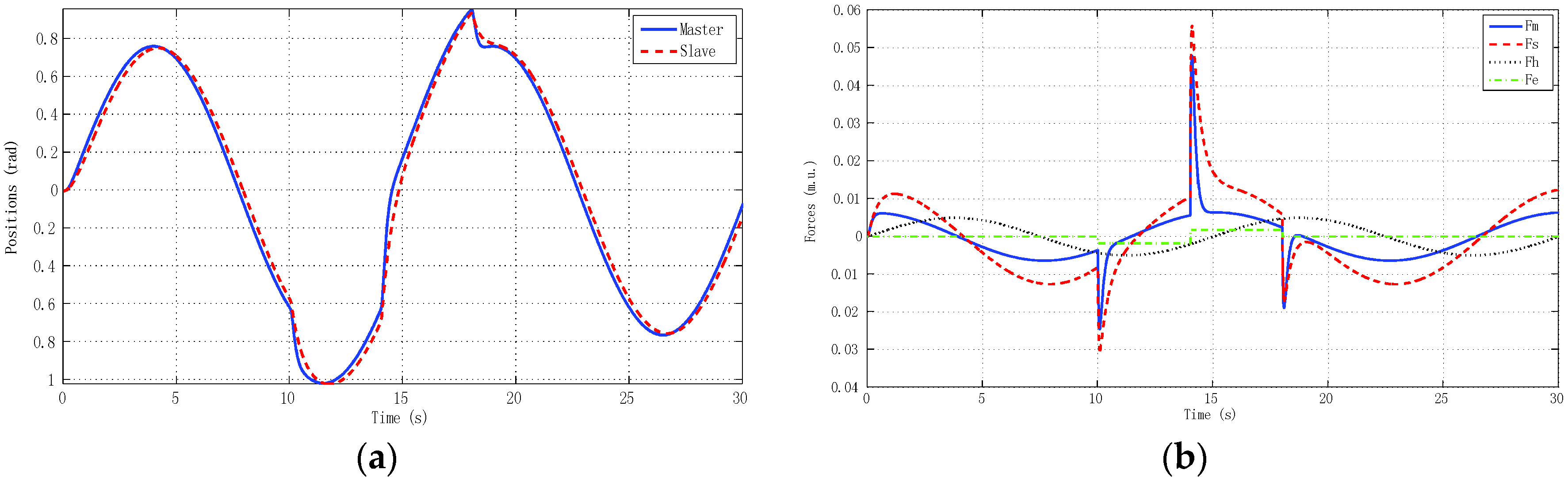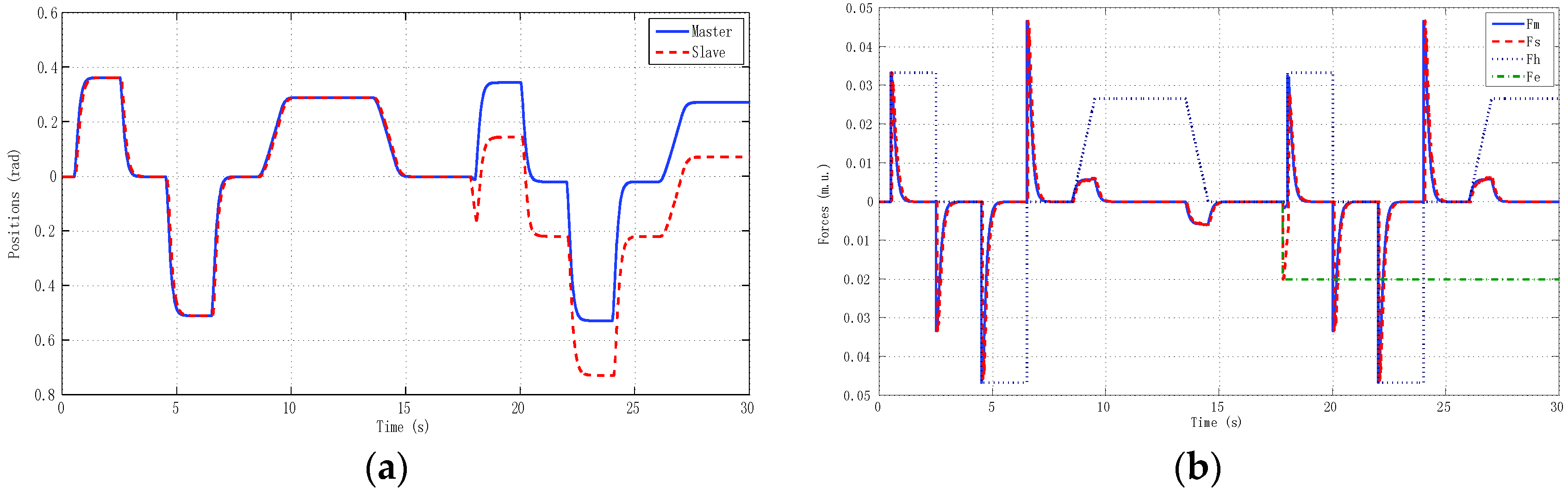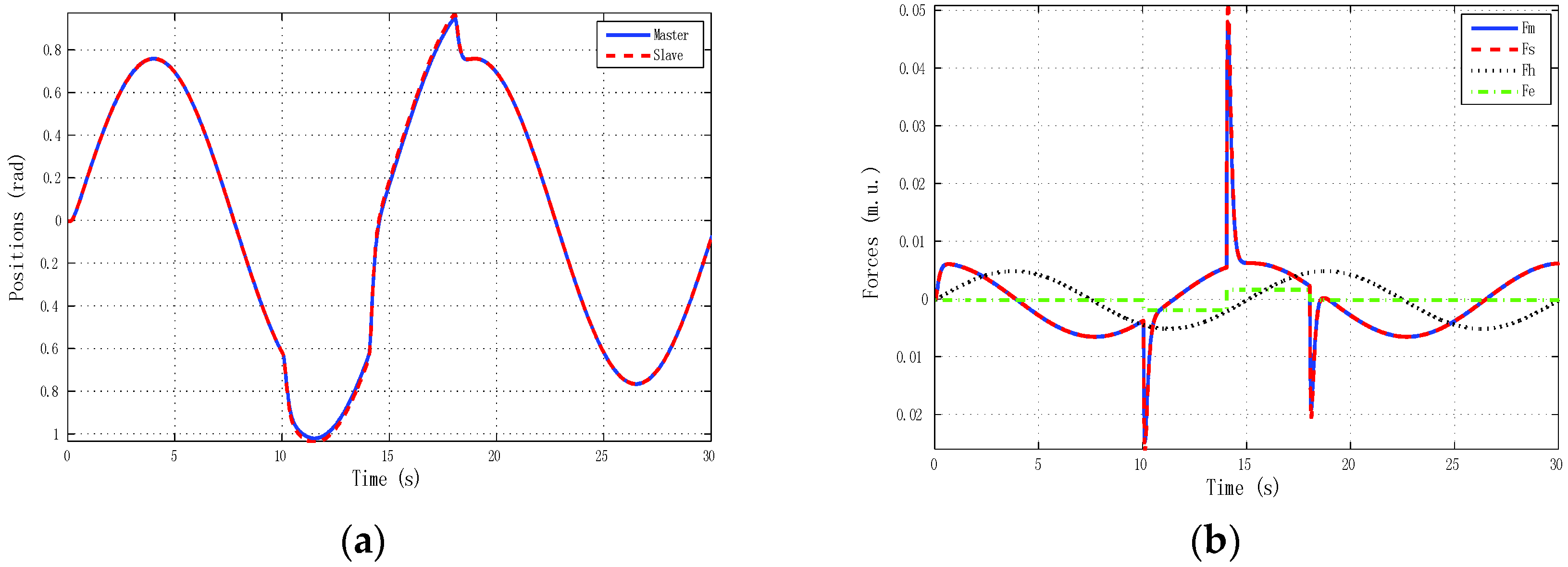 Figure 9b, without external forces, drove the master and slave to their zero states.
