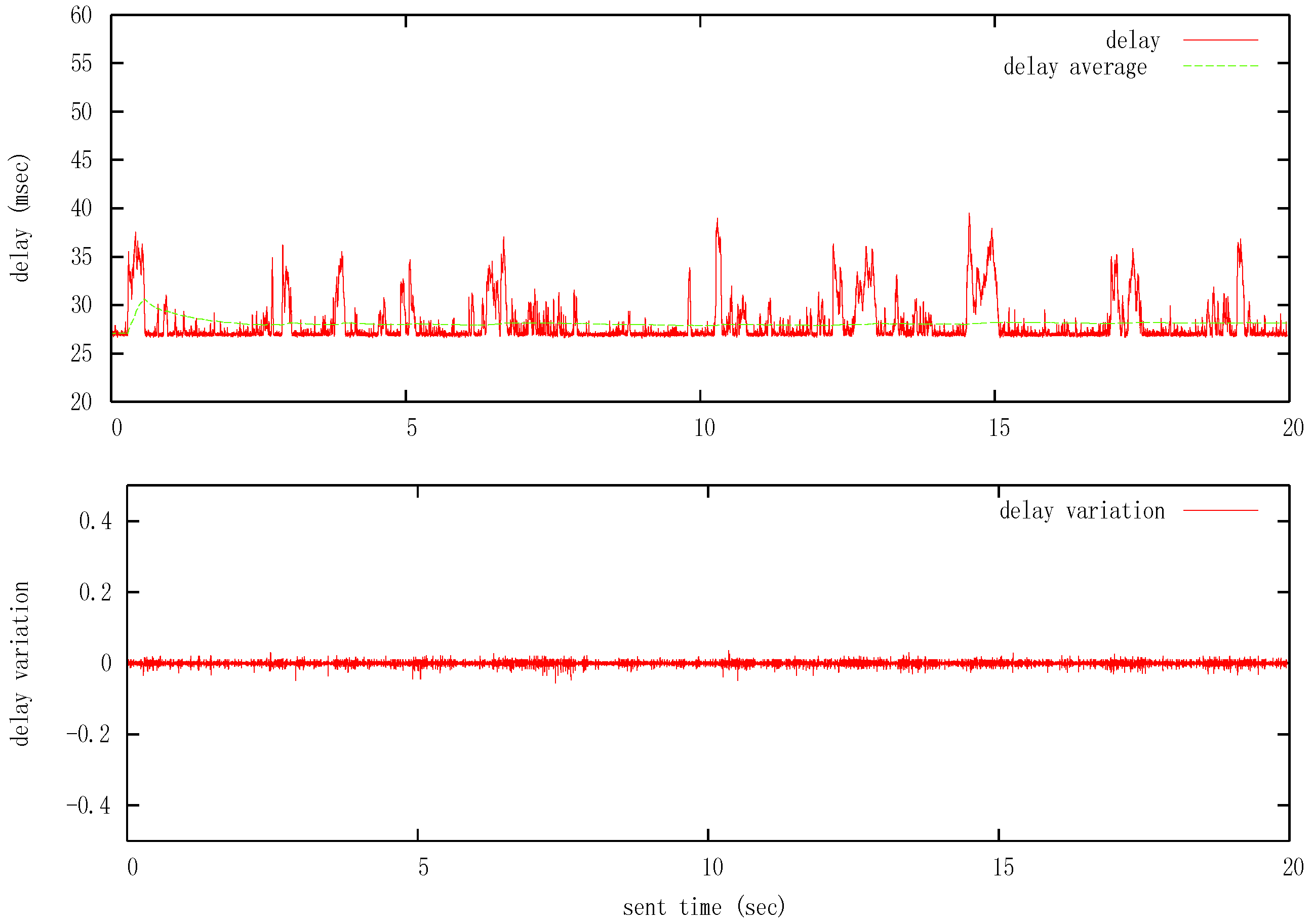 Figure 19 shows some experimental data for connections via Internet between Vigo and Manchester. The delay was measured in terms of the round trip time (RTT) communication. The maximum delay was near