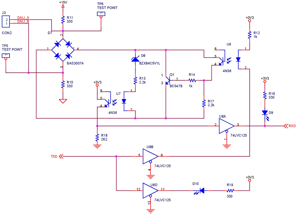 The main disadvantage of the DALI protocol is that it is not implemented in most microcontrollers. In addition, the logic levels of the physical layer have incompatible voltage values with most microcontroller-based systems.