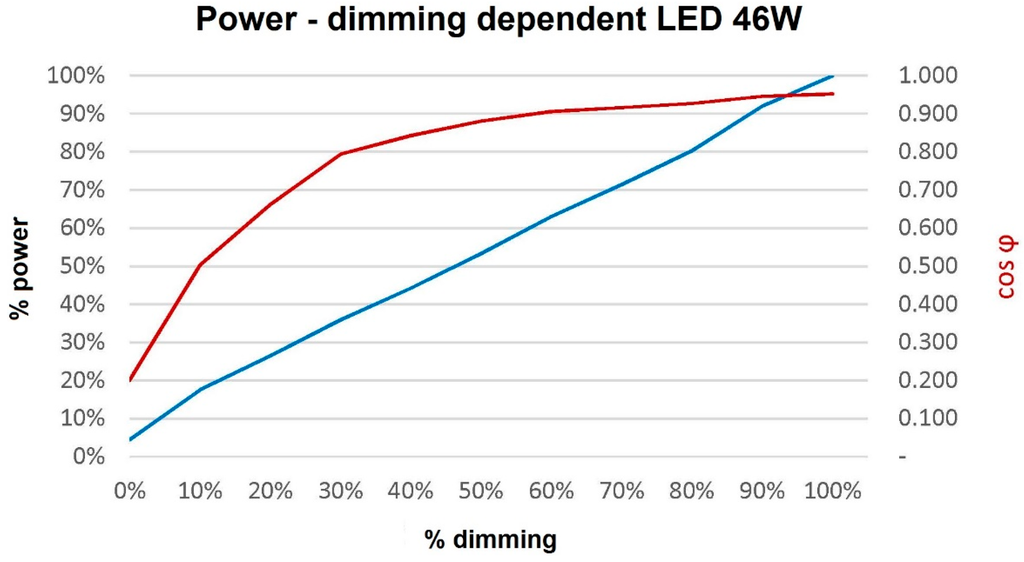 Power curve and cos depending on the dimming.