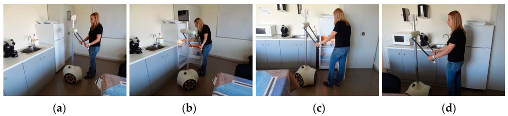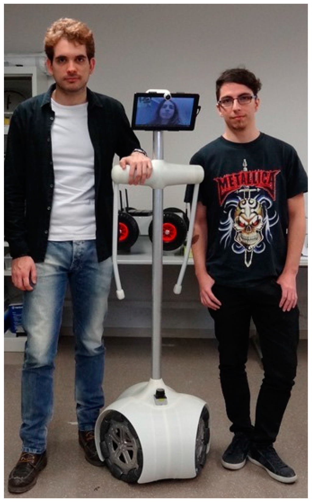 The development of assistive robots can provide benefits through the development of optimized solutions for some specific problems that appear in typical household domains [7,8]. A review of the technical description of some mobile robots proposed for telepresence applications is available in [8]. As examples of these applications: in [9] a robotic assistant was used in order to help the residents of a geriatric institution perform their daily routine; in [10] an assistive robot was proposed to help elderly people with mild cognitive impairments; in [7] a telepresence robot showed positive results in domestic elder care assistance; in [11] a telepresence robot was used to improve communication and interaction between people with dementia and their relatives; finally, in [12] a home care monitoring system was proposed, based on a fixed sensor network infrastructure and some physiological sensors, offering the possibility of a virtual visit via a tele-operated mobile robot.