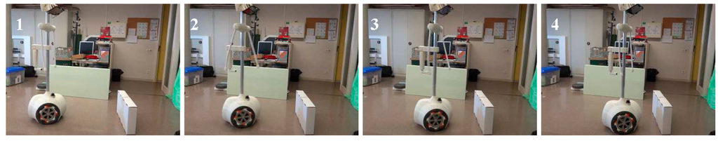 Sequence of images (1–4) obtained in a collision avoidance experiment with the APR moving forward.