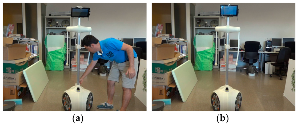 In the context of this paper, a typical example for the application of a household robot is the development of functionalities focused on detecting human inactivity, falls or other accidental situations. In this case, one of the goals is the reduction of the reaction time for external assistance. This aspect is very important because approximately one third of the population aged over 65 falls every year [13] and, in most of the cases, are unable to recover by their own means or ask for assistance [14]. The consequences for elderly people are not limited to physical injuries because a loss of self-confidence also affects mobility drastically [15]. Therefore, telecontrolled mobile robots can be used for social interaction by decreasing isolation and promoting positive emotions and psychological reinforcement.