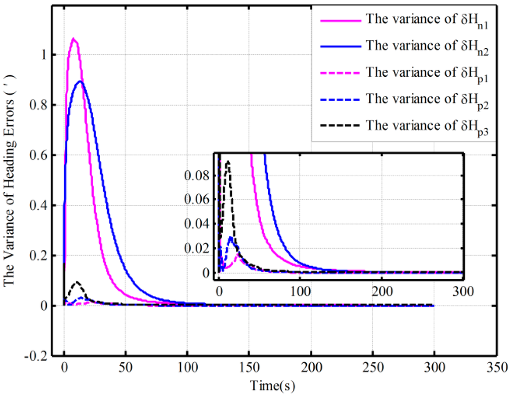 The error variance curves of heading based on the closed-loop KF.