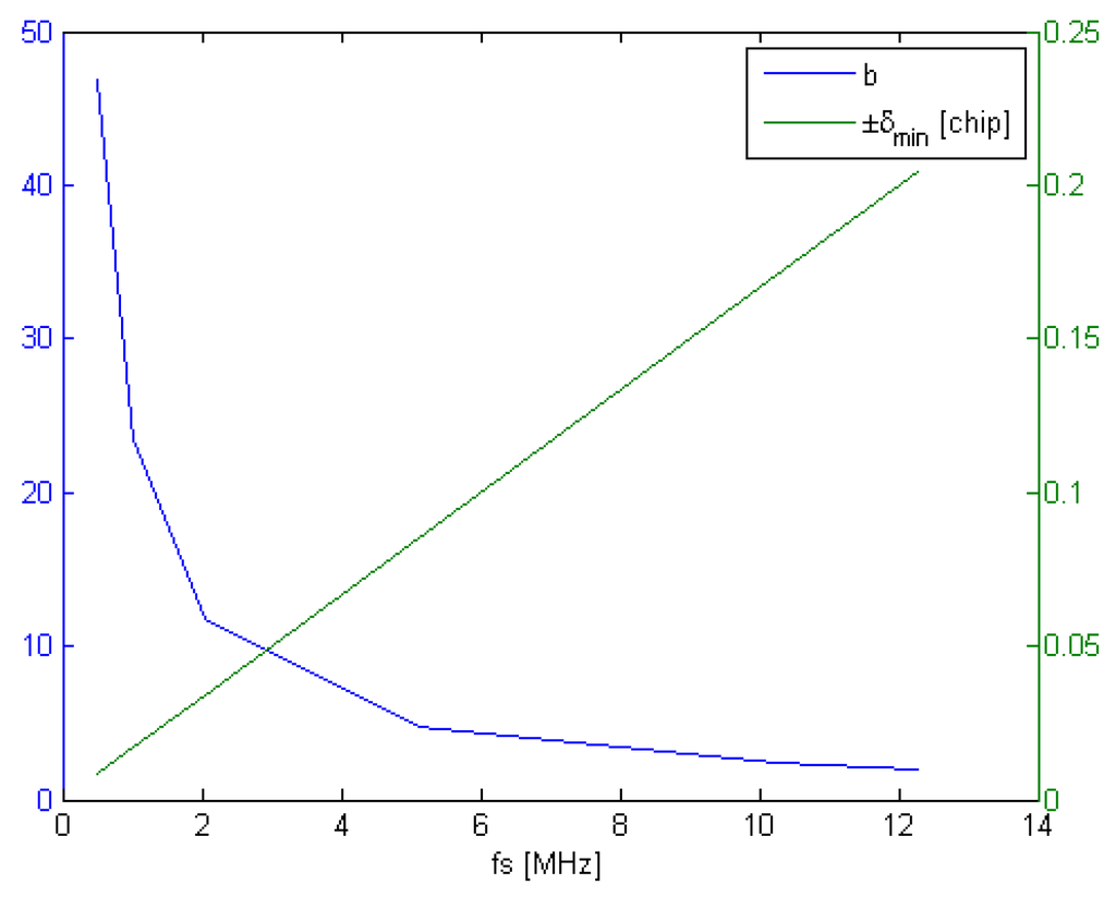 Hodgart, Blunt and Unwin [37] specify that an SLL provides more precise (due to higher rate), but ambiguous (periodic clock signal) measurements compared to the DLL based on the primary code Pseudo-Random Noise (PRN). Both these estimates may be combined as: