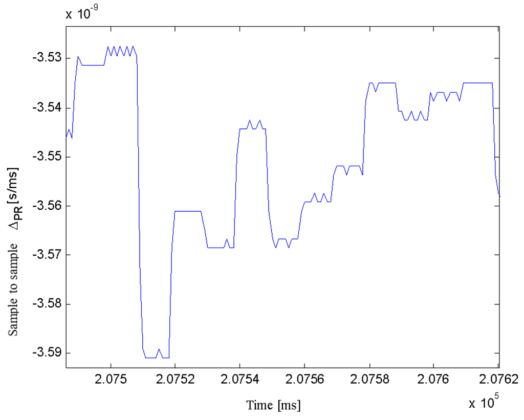 GPS L1 C/A LoS Variation (s) Observed every 1 ms Epoch, Based on 10 ms Non-Coherent Integration Time DLL Feedback Commands.
