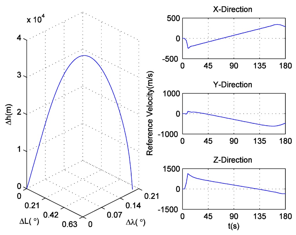 Highly dynamic conditions, which are needed for validating the effectiveness of the ultra-tight GPS/INS integration, are extremely difficult to achieve in practice. To simulate this condition, in this paper, a missile trajectory lasting 180.23 s is derived from Fiber Optic Gyroscope (FOG) and accelerometer data, which are telemetered during a missile test, and is treated as the reference trajectory. The position of the missile relative to the launch site in geodetic coordinate system, and the velocity of the missile in ECEF coordinate system are shown in Figure 9. Figure 10 shows the (strapdown) INS used in the missile test. The statistical characteristics of the FOG and accelerometer are listed in Table 4. If the same errors in turn are added to the original FOG and accelerometer data, a set of new data can be generated. The trajectory corresponding to these new inertial measurements can be used as the INS navigation result, which needs to be calibrated by the ultra-tight GPS/INS integration. In addition, based on the reference trajectory as well as the satellite configuration at the missile launch site shown in Figure 11, the IF signal can be simulated.