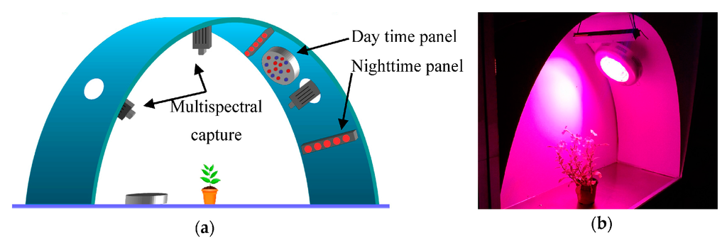 - Navarro, P.J.; Fernández, C.; Weiss, J.; Egea-Cortines, M. Development of a configurable growth chamber with a computer vision system to study circadian rhythm in plants. Sensors 2012, 12, 15356–15375. [Google Scholar] [CrossRef] [PubMed]