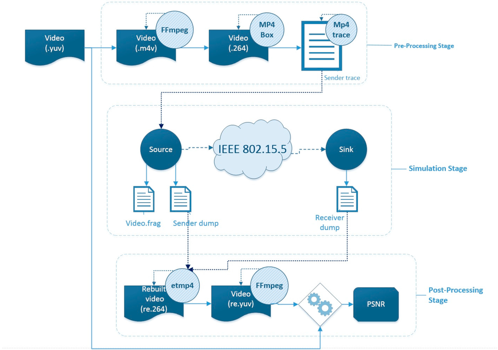 33]. This tool implements the SES reservation-based method as energy-saving mechanism, following faithfully the standard specification. Furthermore, the simulation framework integrates the SES method and the EvalVid software, which generates compressed QCIF video sequences with different motion, encoded using H.264/AVC. These sequences are transmitted through mesh networks of different sizes. The main results of the simulations have been presented and discussed, highlighting the most important metrics such as latency, jitter, time between packets, message delivery ratio, power consumption, lifetime and PSNR. The importance of the selection of appropriate values for the