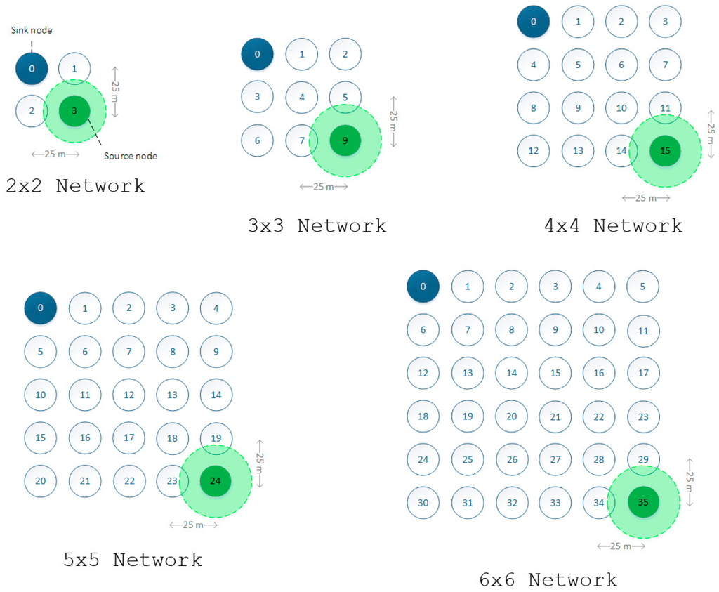 Mesh topologies, in addition to enabling multiple routing paths between two nodes outside of radio communication range with each other, have proven advantages against other topological configurations, such as tree-based or cluster-based topologies, which include data transmission reliability, network robustness against node failures, and potential reduction in energy consumption [