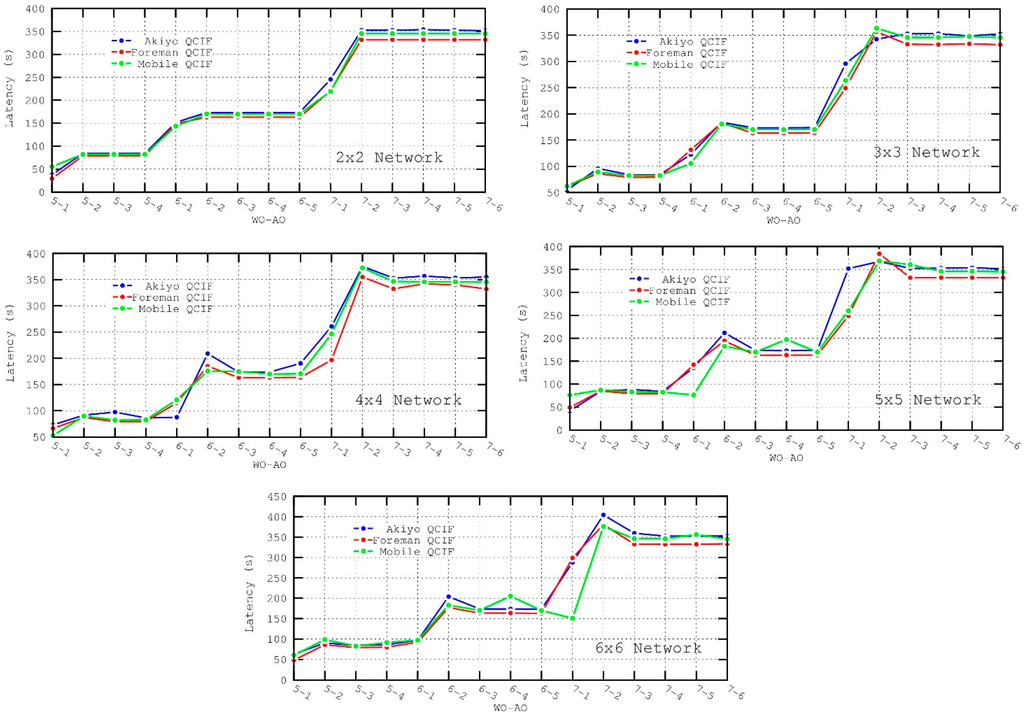 Besides, it can be observed that, for a fixed value of WO, the latency remains almost constant in the interval 3 ≤ AO < WO. Thus, a further increase of the