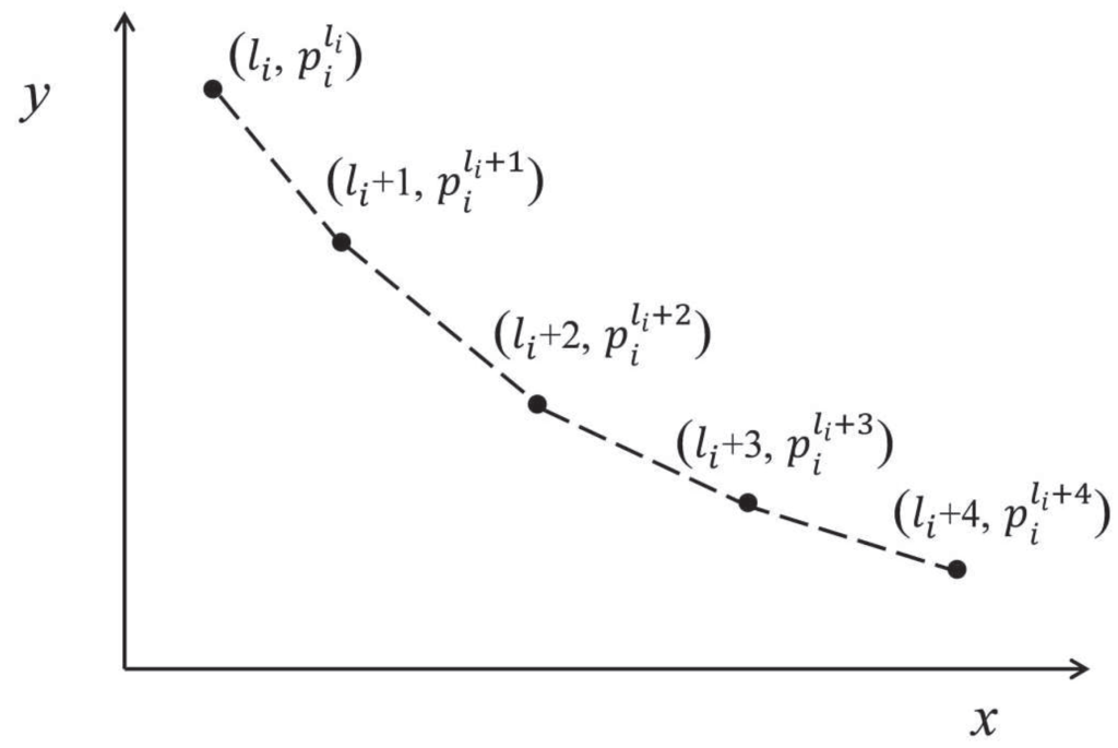 According to and , piecewise linear function is defined as follows, where . We use an example to illustrate the defined function, as depicted in Figure 2.