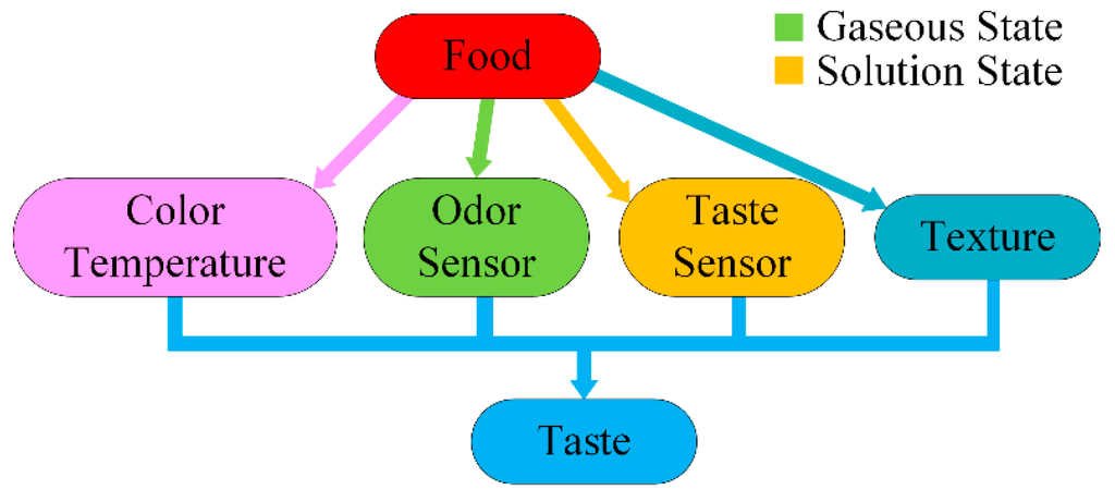When addressing the issue of food taste detection, analogies can be set up within the biological taste sensing system as well as the electronic taste sensing system, insofar as several approximations can be establish in their operating principles and structure; these analogies are presented in Table 2 and Figure 2.
