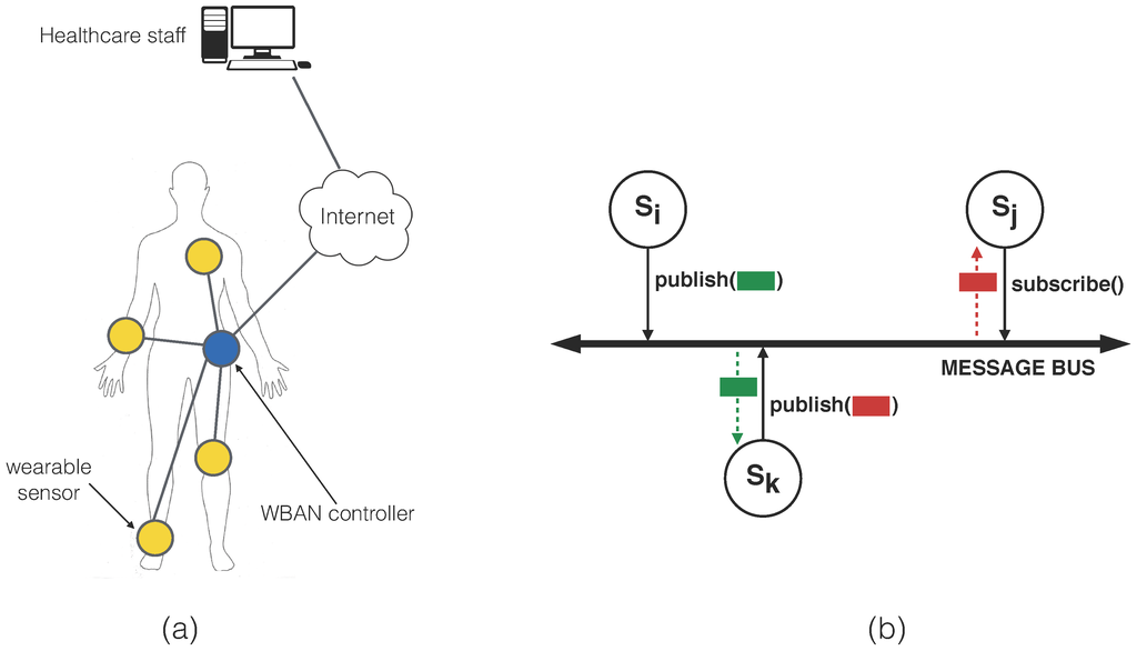 - Picazo-Sanchez, P.; Tapiador, J.E.; Peris-Lopez, P.; Suarez-Tangil, G. Secure publish-subscribe protocols for heterogeneous medical Wireless Body Area Networks. Sensors 2014, 14, 22619–22642. [Google Scholar] [CrossRef] [PubMed]