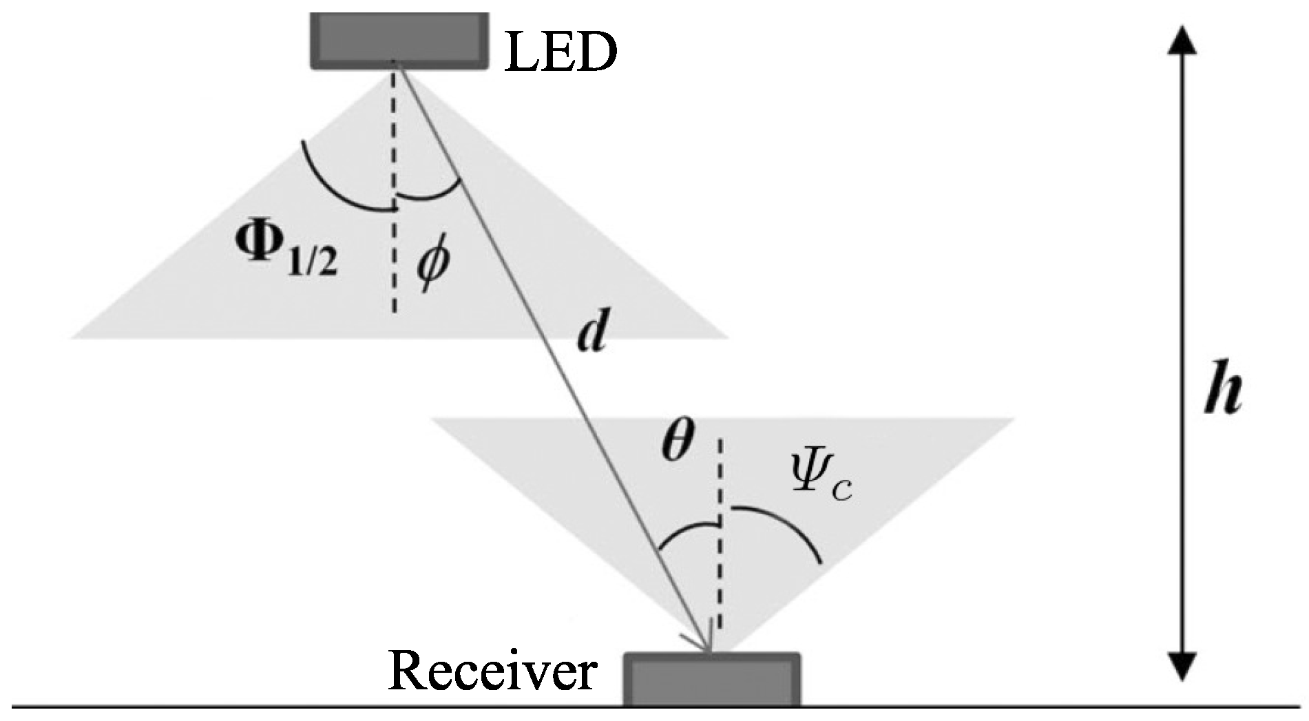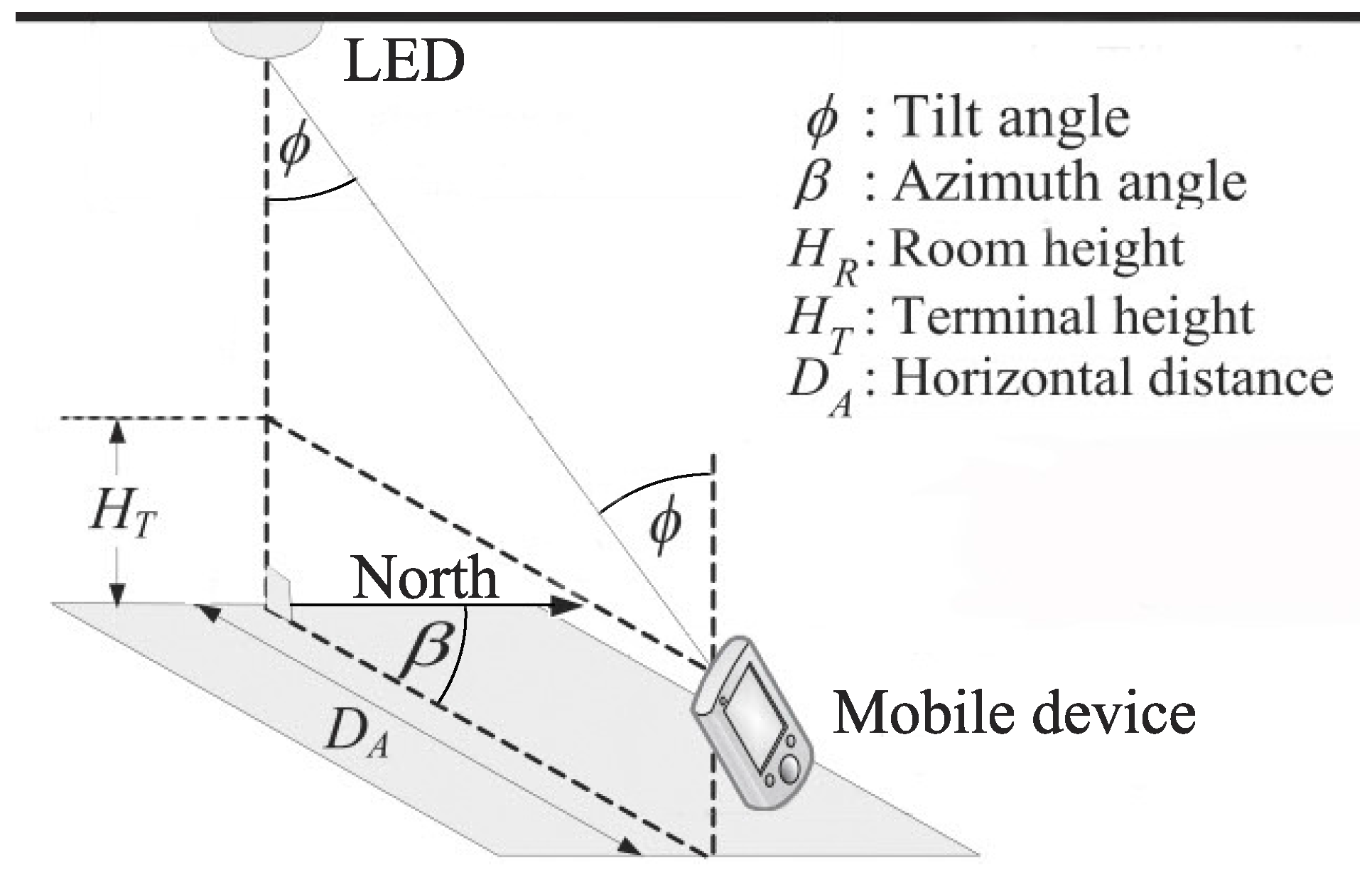 - Prince, G.B.; Little, T.D. A two phase hybrid RSS/AoA algorithm for indoor device localization using visible light. In Proceedings of the Global Communications Conference (GLOBECOM), Anaheim, CA, USA, 3–7 December 2012; pp. 3347–3352.