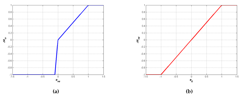 Fuzzy transfer functions. (a) FDM1; (b) FDM2.