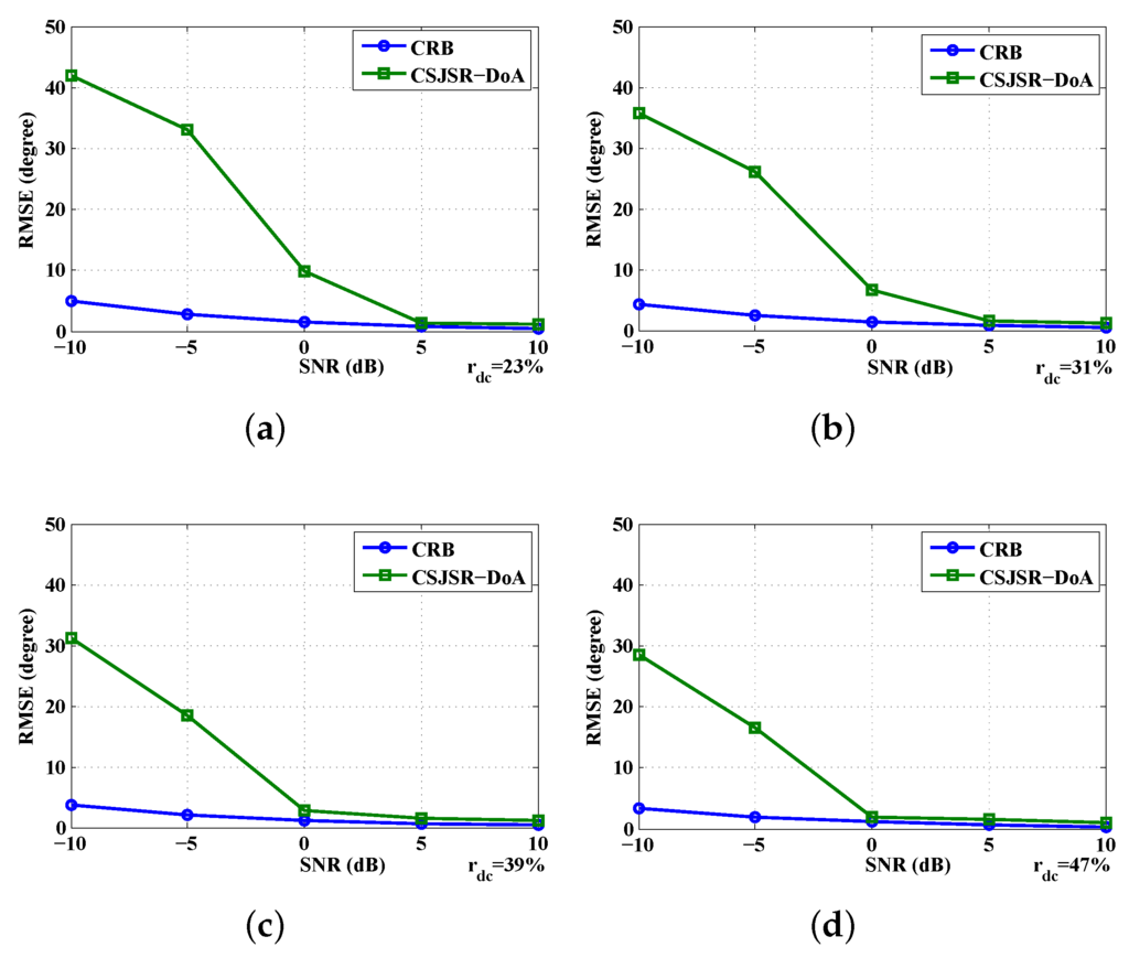 4.2. Cramr–Rao Bound of CSJSR-DoA