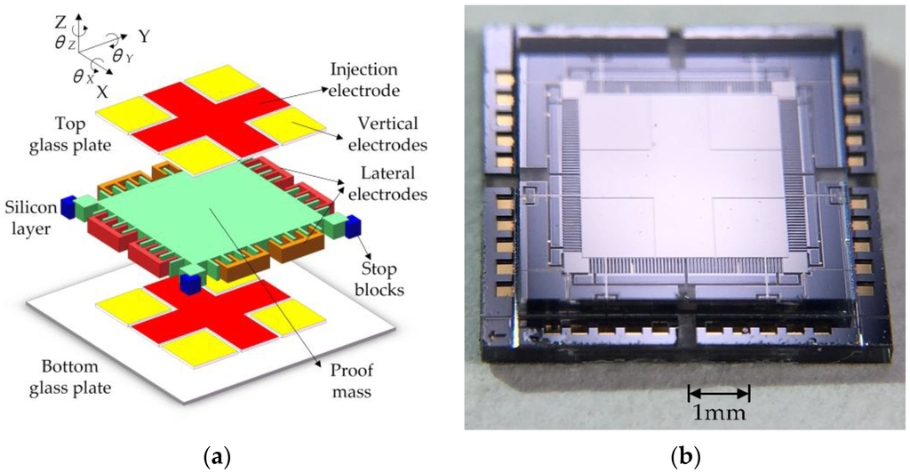 - Cui, F.; Liu, W.; Chen, W.; Zhang, W.; Wu, X. Design, fabrication and levitation experiments of a micromachined electrostatically suspended six-axis accelerometer. Sensors 2011, 11, 11206–11234. [Google Scholar] [CrossRef] [PubMed]