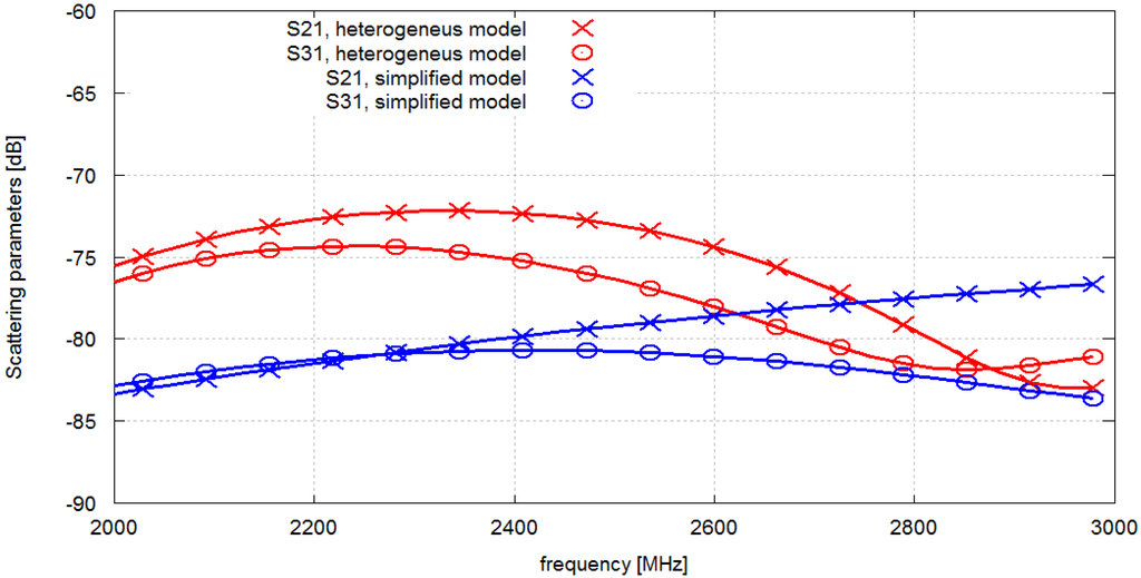 In Figure 9 we present the scattering matrix parameter values (S21 and S31) before and after optimization for 2.4 GHz. The improvement of S31 is visible while S21 changed only slightly.