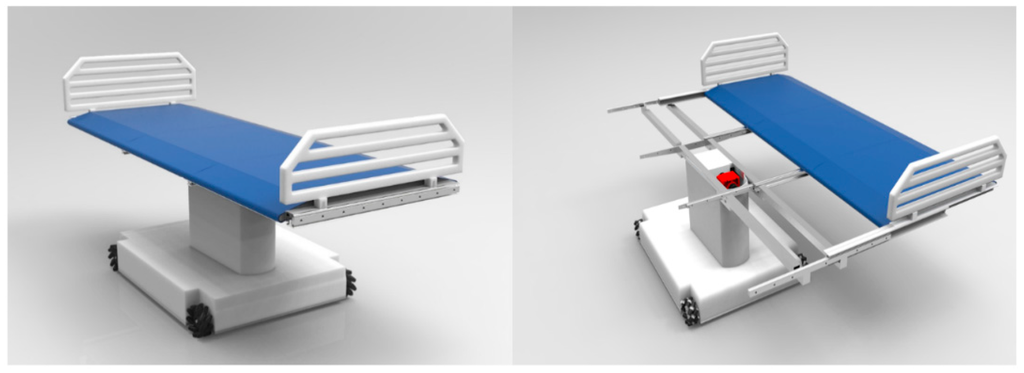 - Griswold, G.B.E.; Lee, F.; Edward, A.; Beckstrom, D. Patient Transfer System. U.S. Patent 2012/0299353 A1, 29 November 2012. [Google Scholar]