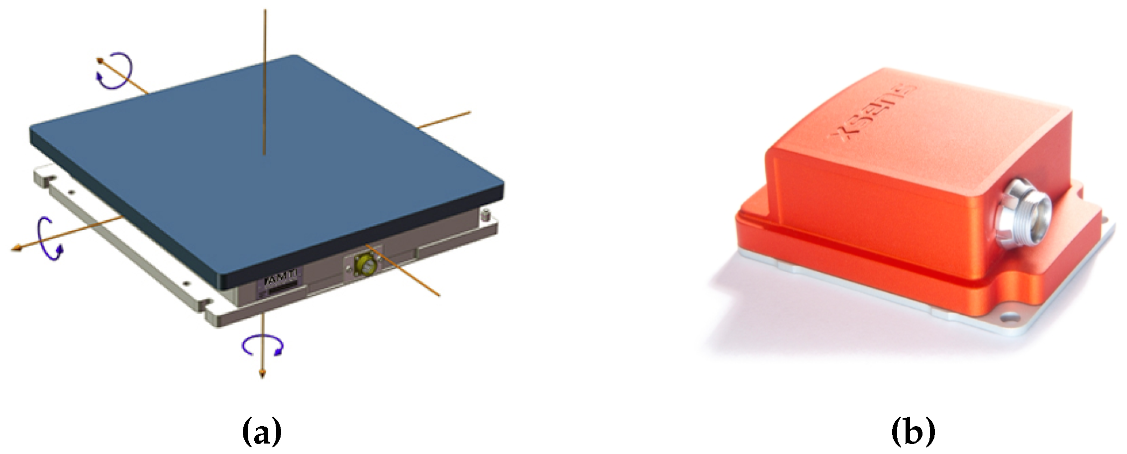 Sensors used in the experiment: a force platform AMTI OR6 (a) and an inertial sensor Xsens MTx comprising both accelerometer and gyroscope (b).