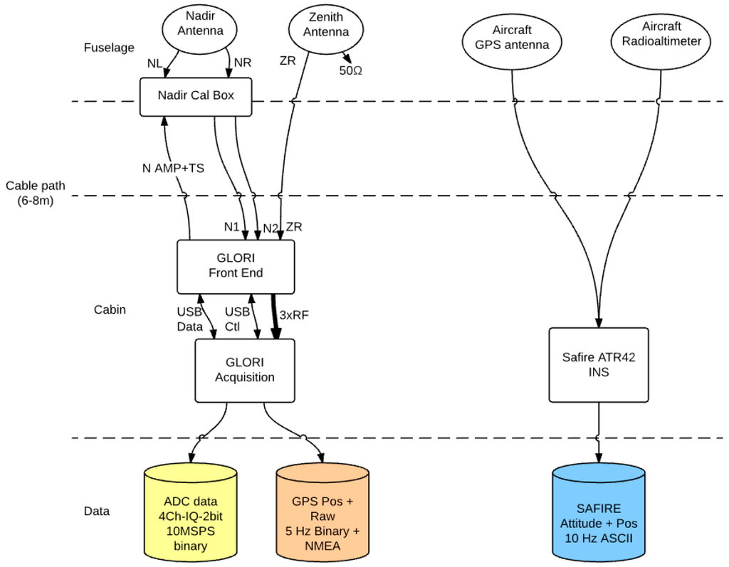 The GLORI instrument comprises three subsystems: two antennas, the front-end receiver, and the acquisition unit.