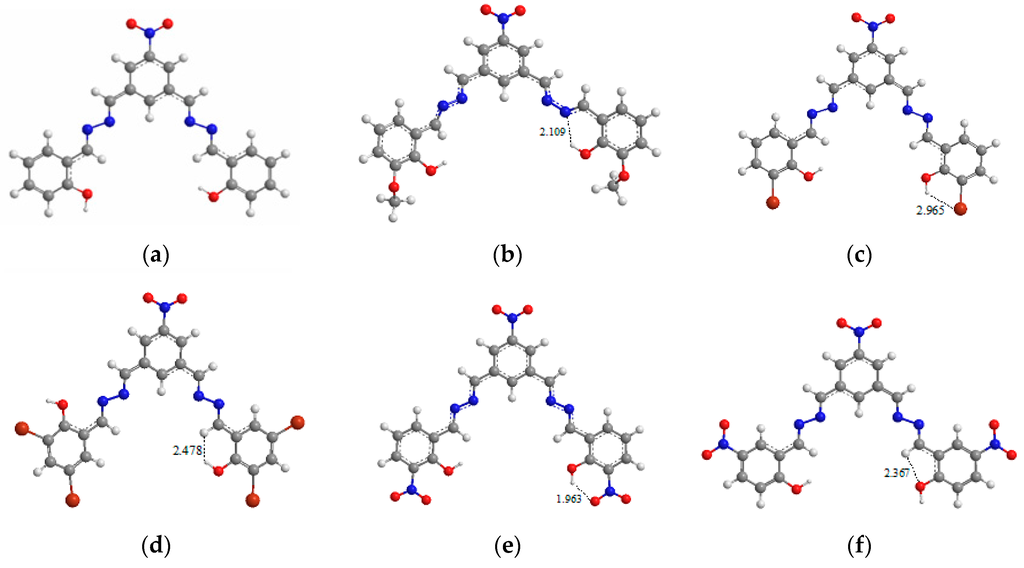- Frisch, M.J.; Trucks, G.W.; Schlegel, H.B.; Frisch, M.J.; Trucks, G.W.; Schlegel, H.B.; Scuseria, G.E.; Robb, M.A.; Cheeseman, J.R.; Montgomery, J.A., Jr. Software for Computational Chemistry; Gaussian, Inc.: Pittsburgh, PA, USA, 2003. [Google Scholar]