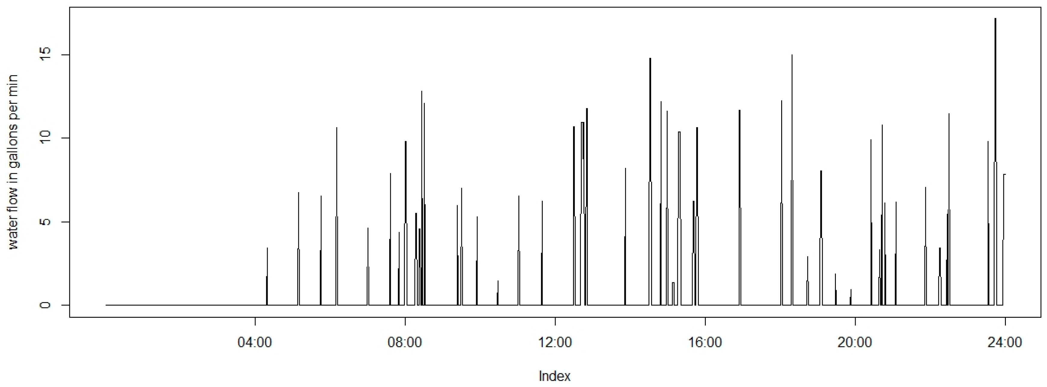 58], where the objective was to define and identify a set of patterns (e.g., low but continuous flow over 48 h or more), which are quantitative and disaggregated assessment of water usages without precisely detecting which human activity is behind what usage. Bridging the gap between the aforementioned water signatures and the underlying human activities is a promising direction to investigate.