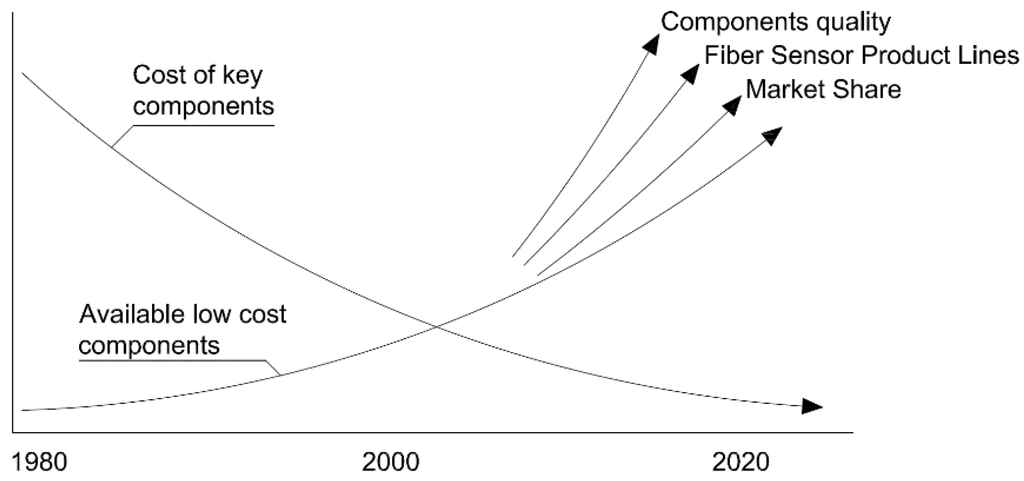 - Miller, J.W.; Mendez, A. Fiber Bragg grating sensors: Market overview and new perspectives. In Fiber Bragg Grating Sensors: Recent Advancements, Industrial Applications and Market Exploitation; Bentham Science Publishers: Sharjah, United Arab Emirates, 2014; pp. 313–320. [Google Scholar]