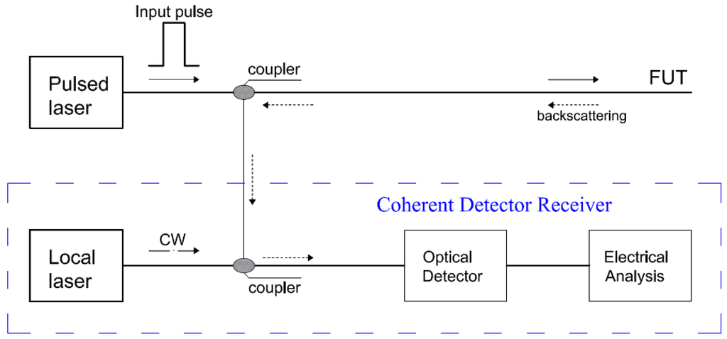 - Eickhoff, W.; Ulrich, R. Optical frequency domain reflectometry in single-mode fiber. Appl. Phys. Lett. 1981, 39, 693–695. [Google Scholar] [CrossRef]