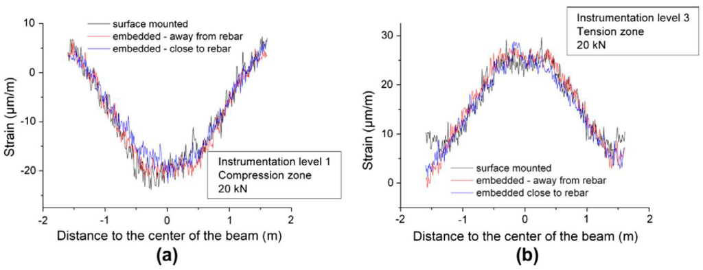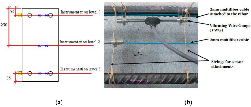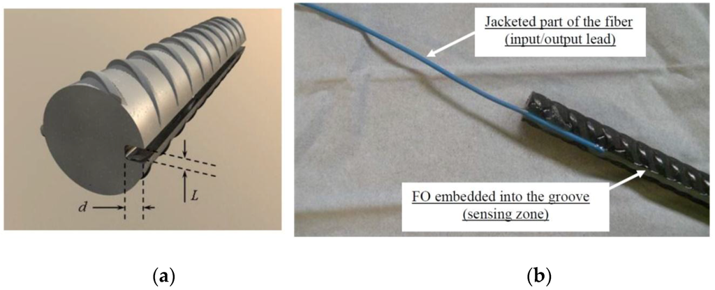 - Zeng, X.; Bao, X.; Chhoa, C.Y.; Bremner, T.W.; Brown, A.W.; DeMerchant, M.D.; Ferrier, G.; Kalamkarov, A.L.; Georgiades, A.V. Strain measurement in a concrete beam by use of the Brillouin-scattering-based distributed fiber sensor with single-mode fibers embedded in glass fiber reinforced polymer rods and bonded to steel reinforcing bars. Appl. Opt. 2002, 41, 5105–5114. [Google Scholar] [CrossRef] [PubMed]