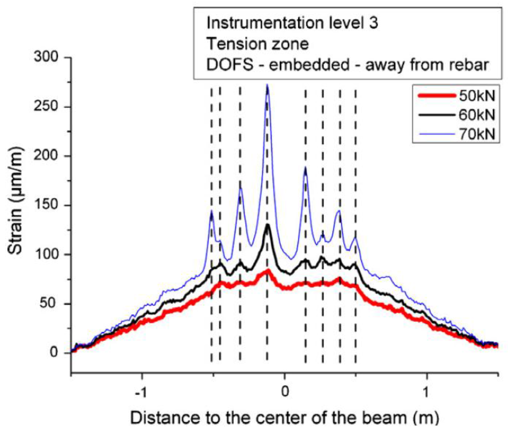 - Rodríguez, G.; Casas, J.R.; Villalba, S.; Barrias, A. Monitoring of shear cracking in partially prestressed concrete beams by distributed optical fiber sensors. In Proceedings of the 8th International Conference on Bridge Maintenance, Safety and Management, IABMAS 2016, São Paulo, Brazil, 26–30 June 2016.
