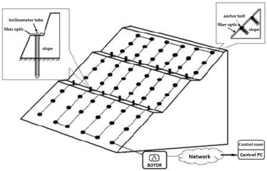 - Shi, B.; Sui, H.; Liu, J.; Zhang, D. The BOTDR-based distributed monitoring system for slope engineering. In Proceedings of the 10th IAEG International Congress, Nottingham, UK, 6–10 September 2006; pp. 1–5.