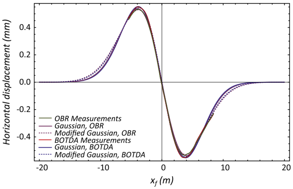 - Klar, A.; Dromy, I.; Linker, R. Monitoring tunneling induced ground displacements using distributed fiber-optic sensing. Tunn. Undergr. Space Technol. 2014, 40, 141–150. [Google Scholar] [CrossRef]